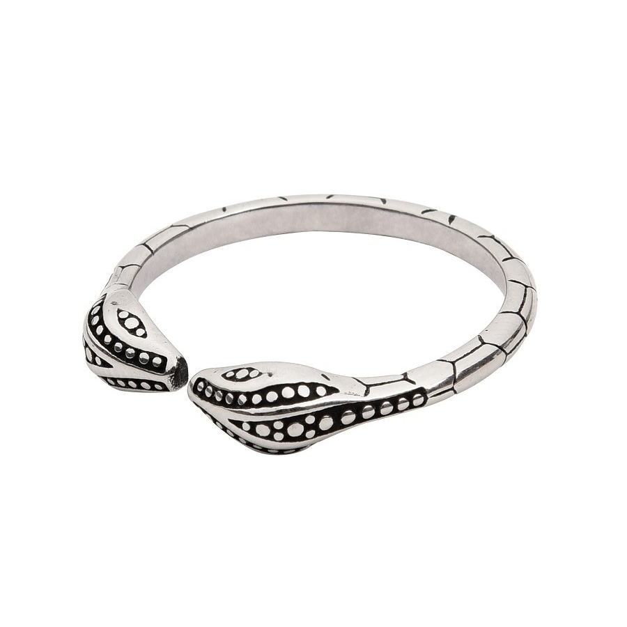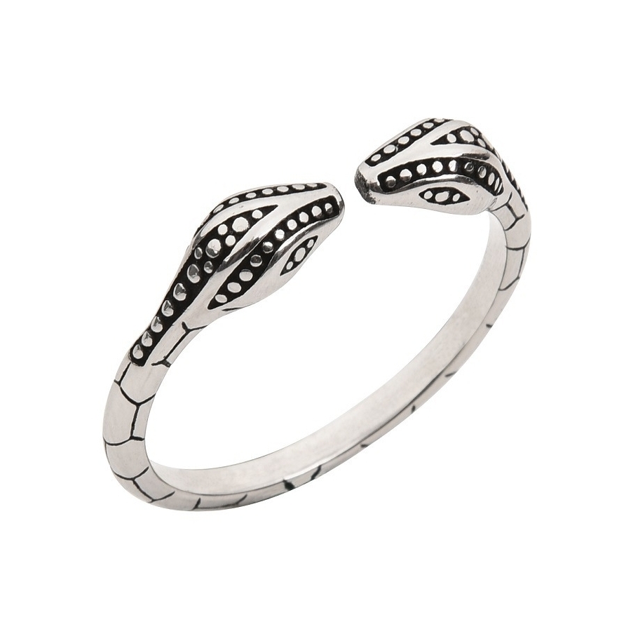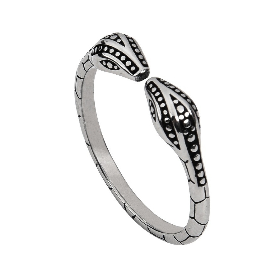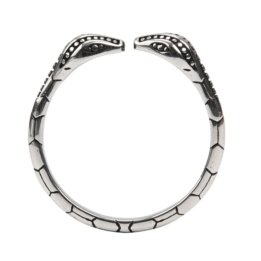 Anneau de gland en métal avec deux têtes de serpent face-à-face.