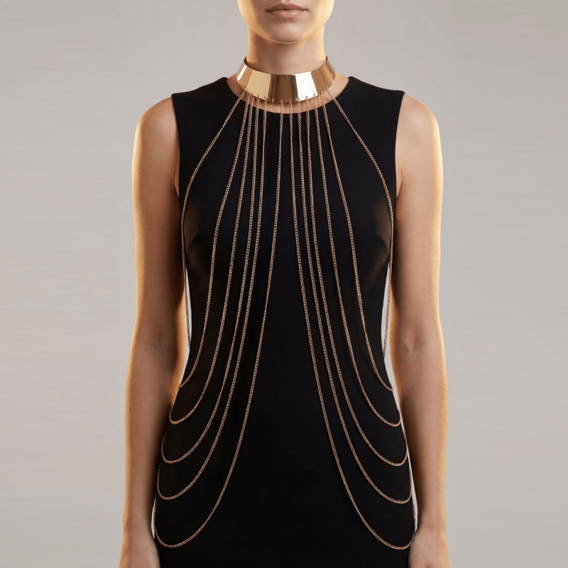 Sublimez votre corps avec cette magnifique Chaine de Corps effet doré avec large cou doré. Ce bijou de corps est à porter sur une robe ou un top noir pour la faire sublimer l’ensemble ou simplement sur votre corps nu. La marque BE LILY Accessoires va sublimer votre silhouette.