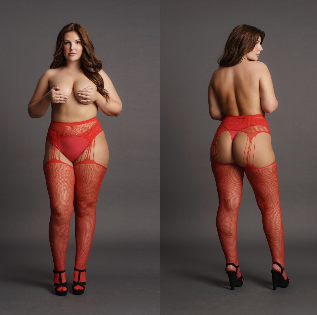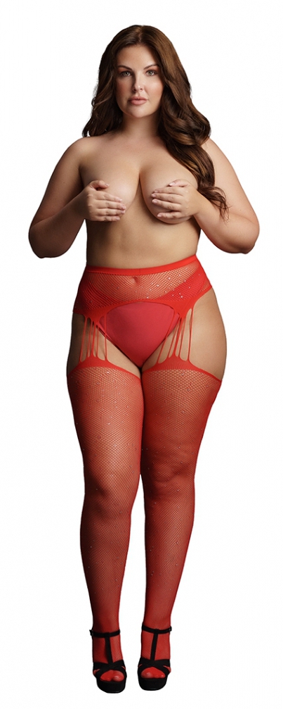 Avec des strass dans la résille. Taille étirable compatible du XXL au 5XL.