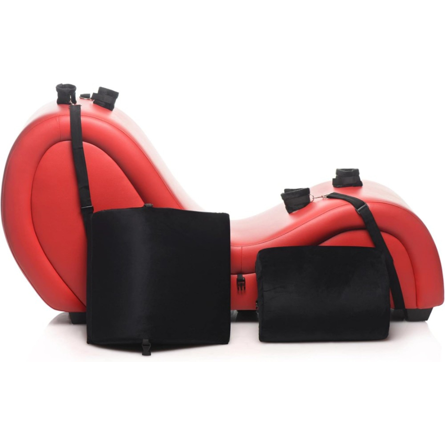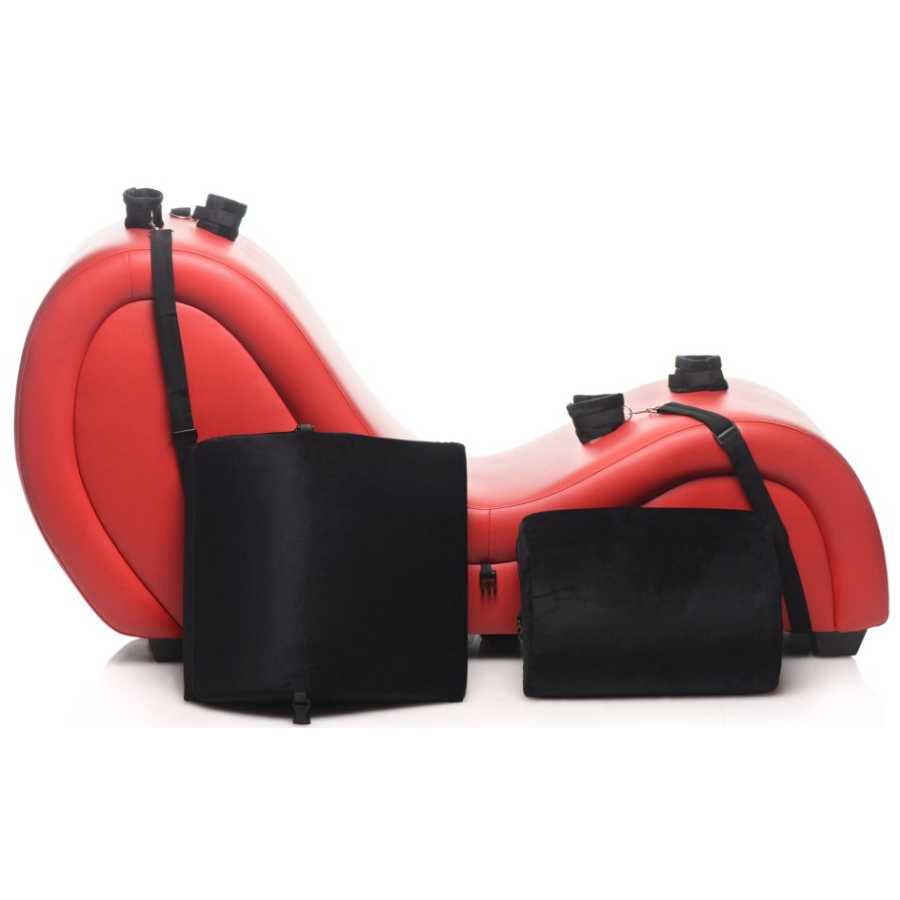 Fauteuil avec une longueur de 165.5 cm, une largeur de 49.5 cm et une hauteur de 74.5 cm. Avec 4 menottes et des coussins de confort.