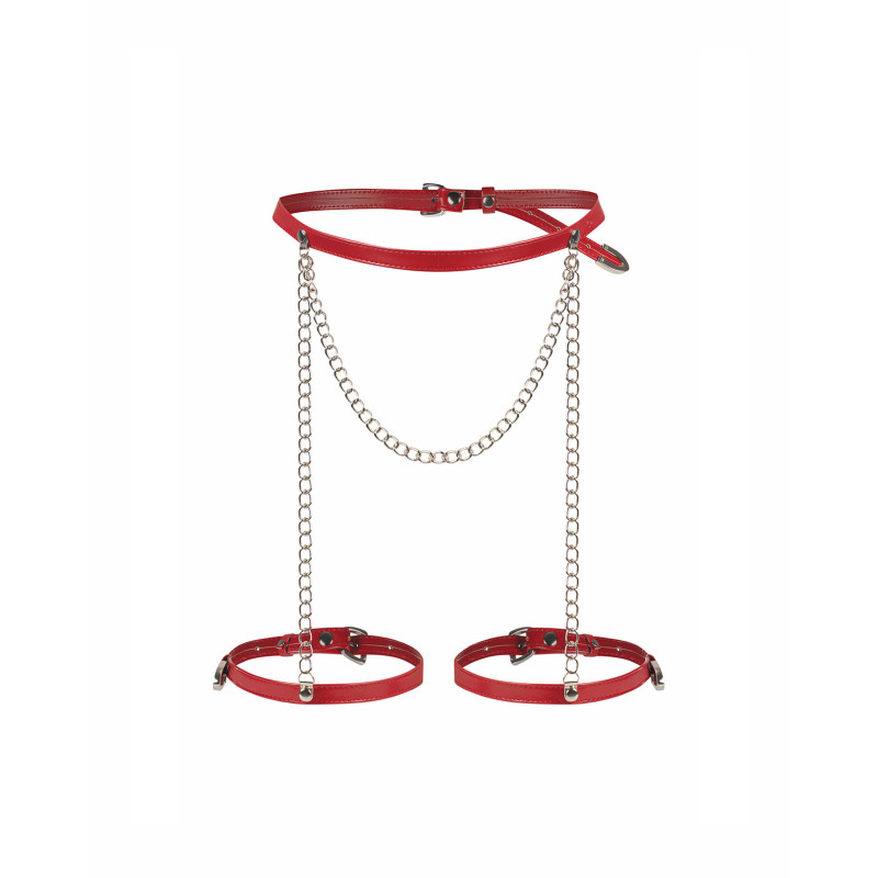 Un harnais avec des chaînes décoratives. Les éléments mobiles créent une parure frappante et accentuent la silhouette. Les sangles réglables permettent un ajustement personnalisé, tandis que la construction solide assure une durabilité et un look élégant.