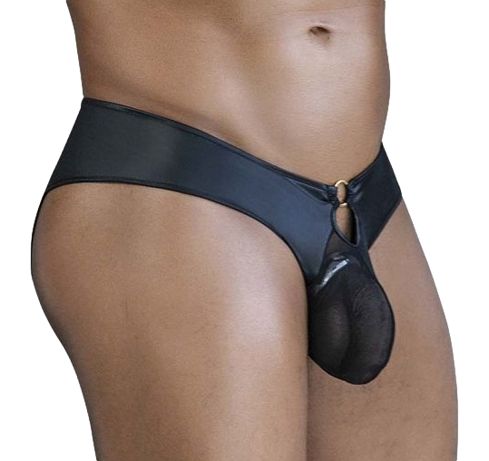 Jockstrap avec un tissu tulle fin à l’avant et un petit anneau en métal.