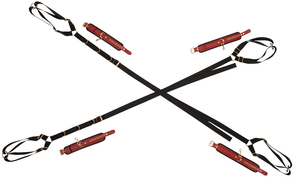 Avec le Bed/Door Restraint Set de Bad Kitty dans une optique noble noire/rouge, chaque lit peut être transformé en un clin d’œil en un playground de bondage stylé et chaque porte en une croix de Saint-André sensuelle. Les accessoires dorés et le similicuir fin offrent le luxe adéquat lors de la fixation confortable en 4 points avec les bras et les jambes largement écartés – en position couchée ou debout, à la maison ou en déplacement. Ainsi, chaque moment captivant devient une aventure exclusive !