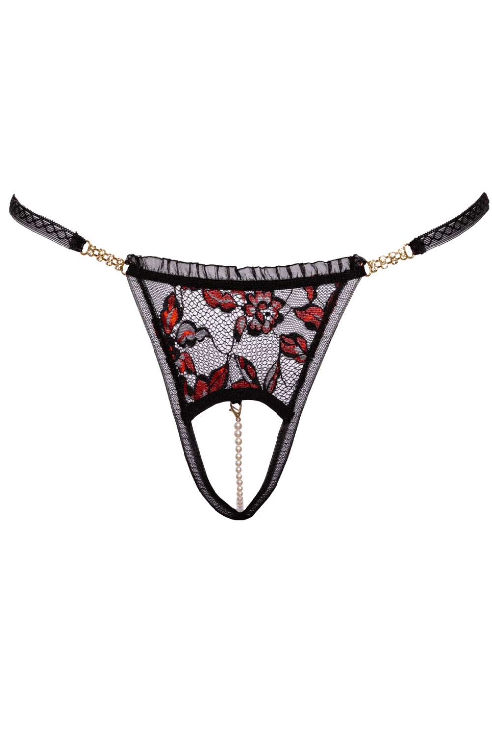 Ouvert à l’entrejambe, ce modèle est complété par une chaîne élastique ornée de perles, pensée pour offrir des sensations stimulantes. La chaîne est entièrement amovible, permettant d’adapter le style et le confort selon l’envie.